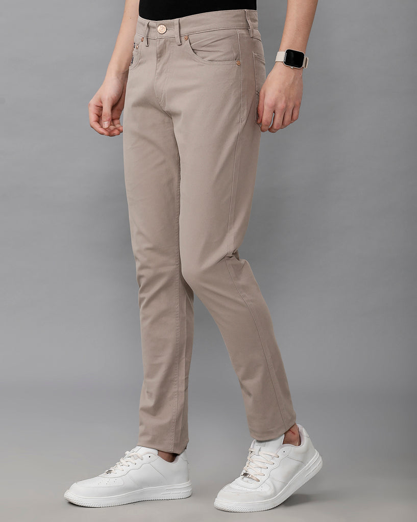 Elevate your wardrobe with these Lean Fit Gaberdines Solid Beige Cotton Trousers. Made from a luxurious blend of 97% Cotton and 3% Lycra, these trousers offer both comfort and style. The tan color and solid pattern exude sophistication, while the 5-pocket design adds functionality. Upgrade your look today.