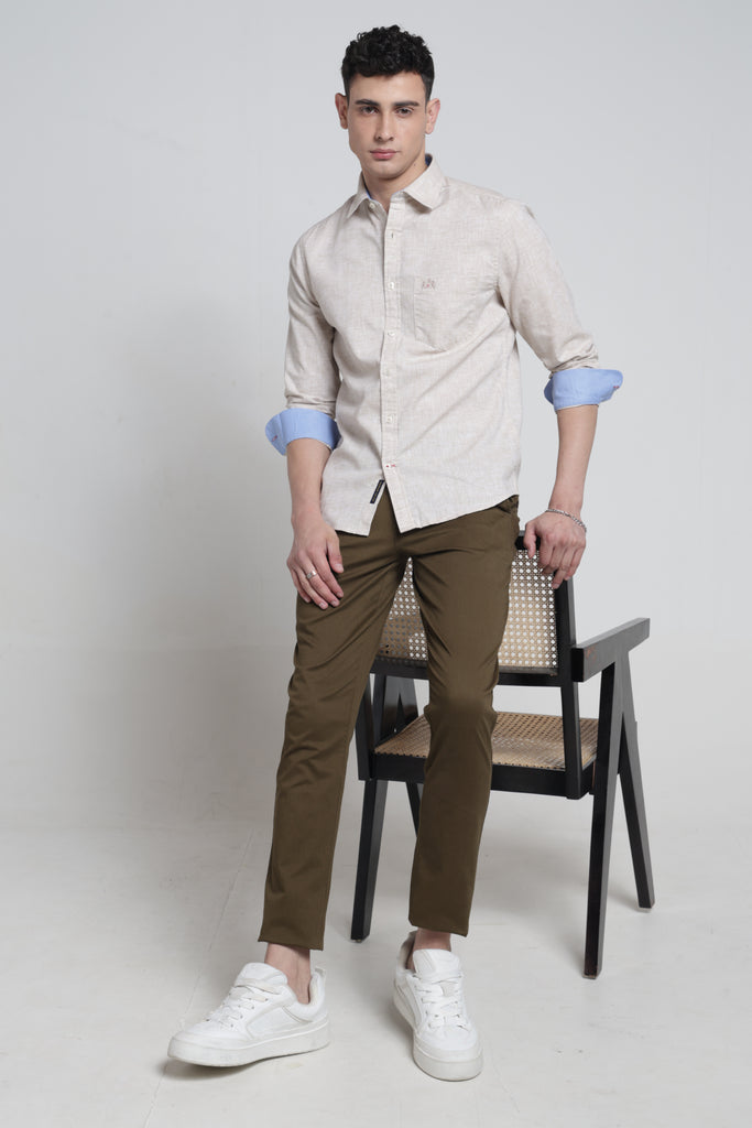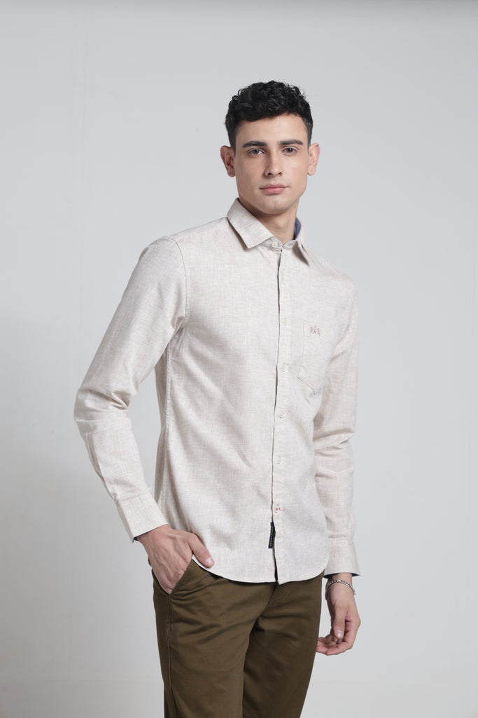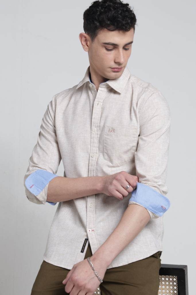 Elevate your wardrobe with this striking linen shirt that commands attention. The sharp pointed collar and full sleeves deliver a bold, contemporary silhouette perfect for those who refuse to blend in. Crafted from breathable linen, it keeps you cool and composed whether you're closing deals or turning heads at social gatherings. The solid finish ensures versatility—dress it up with tailored trousers or down with denim for an effortlessly confident look. A timeless piece that proves understated elegance can still make a powerful statement.