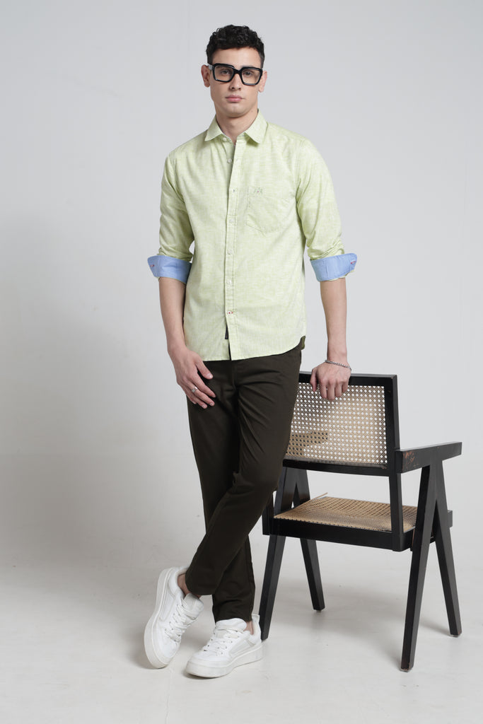 Elevate your wardrobe with this striking linen shirt that commands attention. The sharp pointed collar and full sleeves deliver a bold, contemporary silhouette perfect for those who refuse to blend in. Crafted from breathable linen, it keeps you cool and composed whether you're closing deals or turning heads at social gatherings. The solid finish ensures versatility—dress it up with tailored trousers or down with denim for an effortlessly confident look. A timeless piece that proves understated elegance can still make a powerful statement.