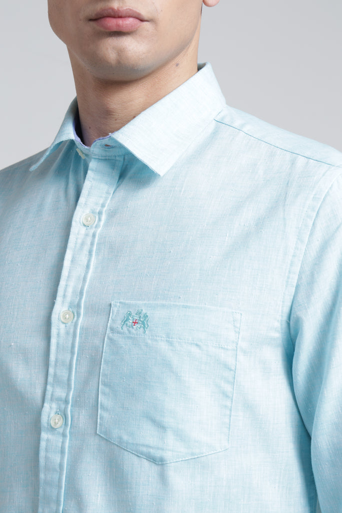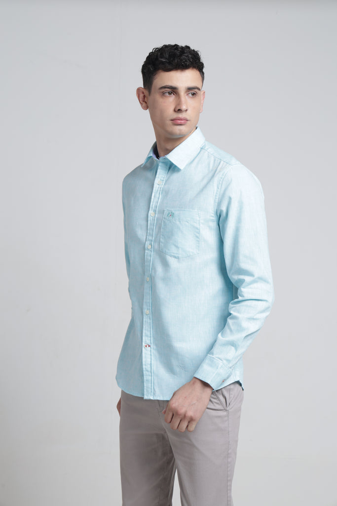 Mens Pointed Collar Full Sleeves Solid Linen Shirt