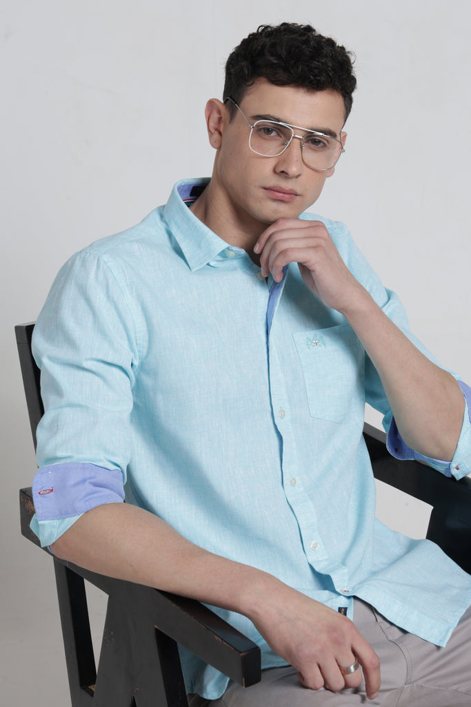 Elevate your wardrobe with this striking linen shirt that commands attention. The sharp pointed collar and full sleeves deliver a bold, contemporary silhouette perfect for those who refuse to blend in. Crafted from breathable linen, it keeps you cool and composed whether you're closing deals or turning heads at social gatherings. The solid finish ensures versatility—dress it up with tailored trousers or down with denim for an effortlessly confident look. A timeless piece that proves understated elegance can still make a powerful statement.