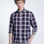 This men's long-sleeve shirt showcases a pointed collar and a striking navy blue base accented with bold white checks. Designed for a refined yet contemporary appearance, it offers a polished look suitable for both office wear and smart casual occasions. The contrasting pattern adds visual interest while maintaining a classic silhouette.