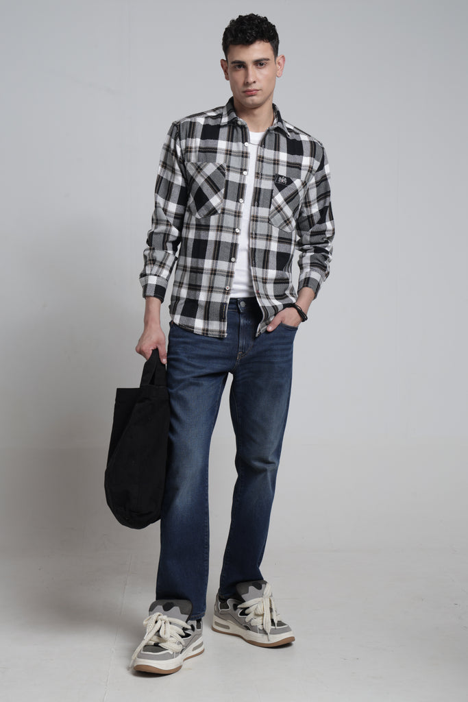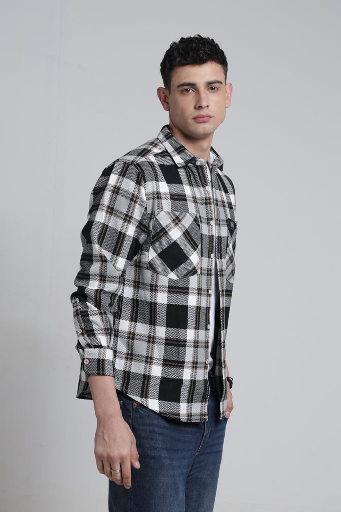 Sharp tailoring meets bold pattern play in this men's pointed collar shirt that refuses to blend in. The classic white and black check design delivers timeless versatility with an edge—pair it with tailored trousers for boardroom confidence or roll up the sleeves for weekend swagger. Long sleeves provide polished coverage while the pointed collar frames the face with precision. Built for the man who knows that a great shirt is the foundation of any outfit worth wearing.